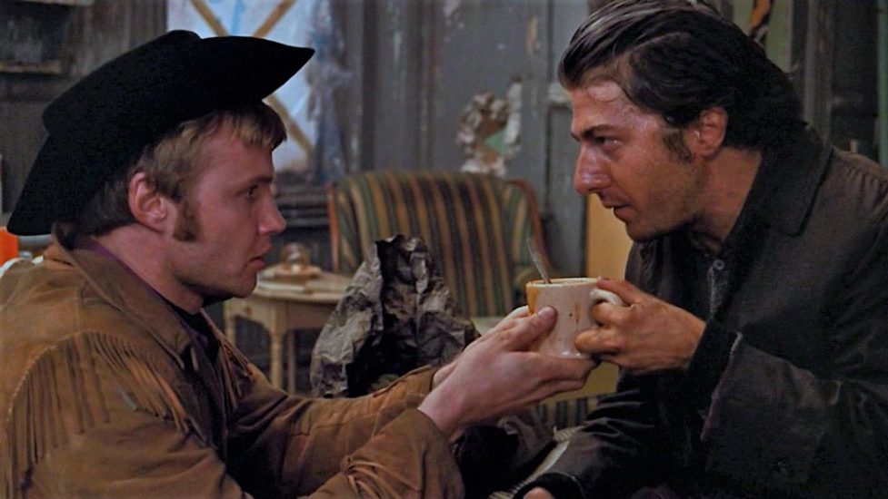 Одна из самых знаменитых сцен в фильме является результатом несчастного случая. Прогулка Хоффмана и Войта была снята в центре Нью-Йорка, и в одном из дублей актёры едва не угодили под машину. Но им удалось не выйти из роли и сохранить самообладание, поэтому данную сцену было решено использовать в фильме.