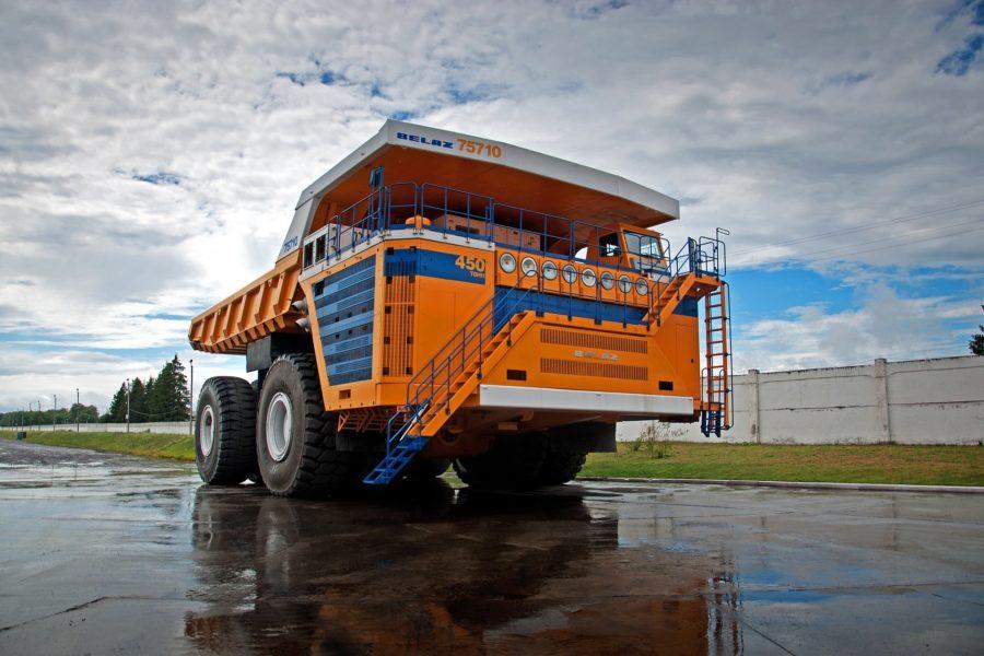 Самый большой самосвал в мире в 2014 году установил абсолютный рекорд, провезя по полигону для испытаний груз в 503 с половиной тонны. Жодинскому предприятию реклама не нужна. В высоту этот красавец сравним с трехэтажным домом(8,17 м), а в ширину достигает цифры 20,6 метра. Без нагрузки масса гиганта составляет 360 т, что намного больше загруженного самолета Airbus A380, а полный около 810 т. У него пара дизельных движков с несколькими электроприводами и 8 колес (4 на каждую ось). Самосвал обладает грузоподъемностью в 450 т. А скорость достигает 67 км/ч. Это большой карьерный самосвал. Ресурс работы таких устройств в среднем составляет срок до 6 лет. И рабочая смена на таком гиганте длится 23 часа. Около часа из этого времени тратится на дозаправку и смену водителя. Выработавшие свой ресурс машины применяются для ремонта самосвалов, которые еще в «строю», что снижает себестоимость.